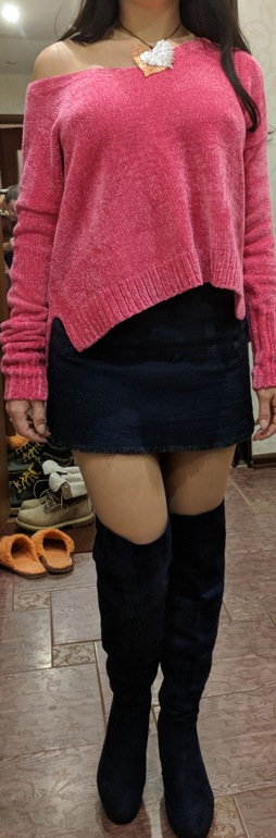 А у меня ботфорты зимние не такие высокие,чуть колено прикрывают только