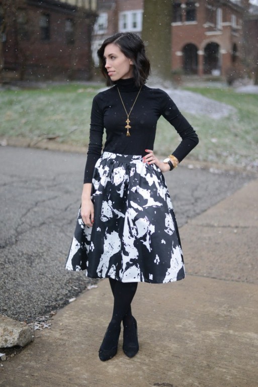 Пригласили на крестины. Сначала храм, потом ресторан. Новое покупать не особо хотелось бы. Из того, что подойдет по длине (храм все-таки), в шкафу есть юбка от Султанны Французовой, коллекция аж 2007 года, но она сейчас в тренде, на мой взгляд. Ткань плотная лен с чем-то, цвет черный, шелковый черный пояс с бантом. Что лучше наверх? На ноги черные колготки (какой плотности?) и ботильоны черные на устойчивом каблуке типа таких, но без молнии, в ресторане туфли лодочки черные.. И еще уточнение, я очень мерзлявая, хорошо б что-то с рукавом и не совсем тоооненькое, а то продрогну быстро и пойду утепляться палантином, спрятав всю красоту.