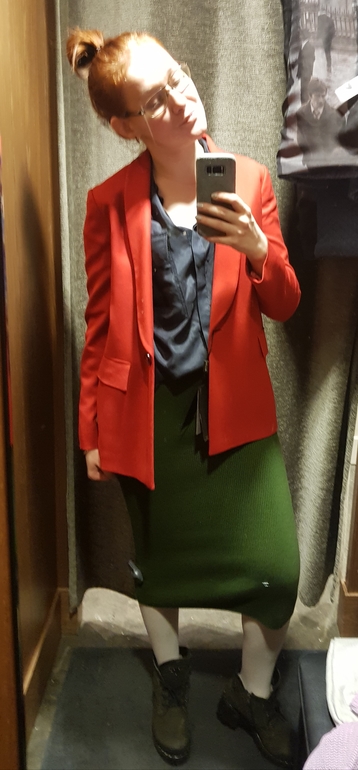 Зеленый, красный супер..последний образ мне не очень юбка явно полнит и не украшает ...рубашка очень темная..