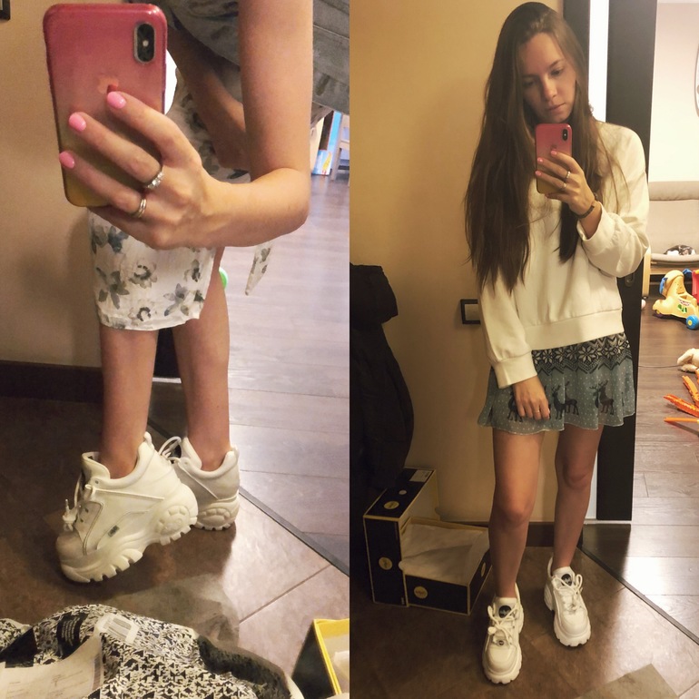 4) самая многочисленная категория - белые кеды: adidas, keds, Valentino (что-то и нет с ними луков) и новые buffalo. Как долго я их хотела. Когда показала подружкам - те сказали «ого», что означает «мы очень тактичные люди и не скажем тебе, что эти кандалы просто ужас». Даже маме не понравились(