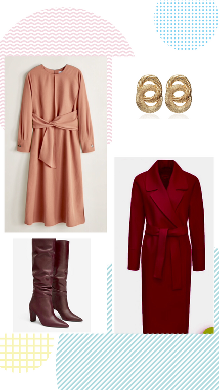 3. Коралл+бордо! Тоже красивое сочетание! Из этого набора все вещи у меня есть в гардеробе, кроме самого платья )