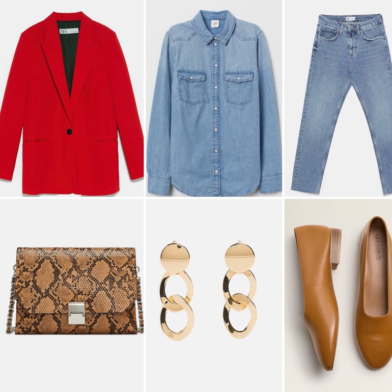 Образ 3. Стильно и удобно. Сочетание нескольких трендов - Тотал деним, животный принт, ретро-обувь, крупные серьги.