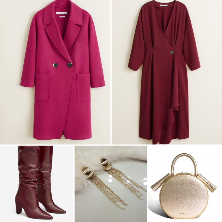 Образ 5. Элегантный, для мероприятия ❤️ Сочетание малинового с бордовым, аксессуары добавляют торжественности.
