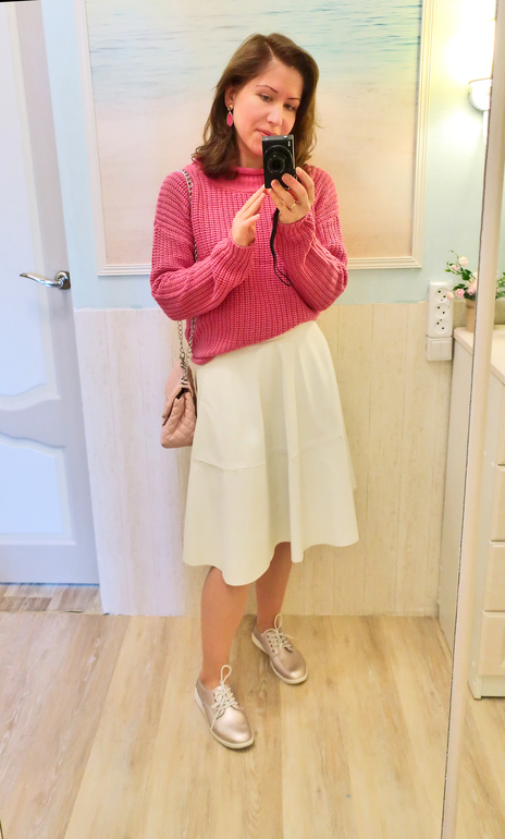 Сложно с верхней одеждой оказалось. Потому что из нашей ничего не подходило для работы: абсурдно смотрелось😁 ну и есть обычный джемпер однотонный, водолазка. Но это зимой, сейчас уже не пригодится.