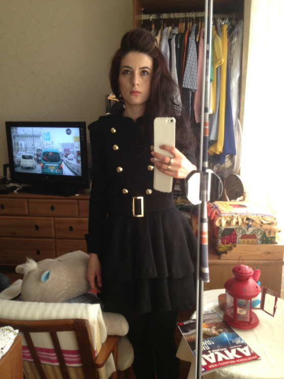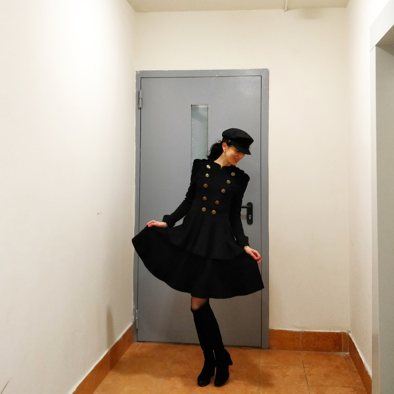 И ещё одна вещь с али. Ей уже лет 7. Мне надоели эти здоровые пуговицы, ремень, и короткая юбка, поэтому я заказала пуговицы ( на том же Али), убрала пояс, и удлинила юбку. Вещь осталась та же, но отношение к ней как к новой))