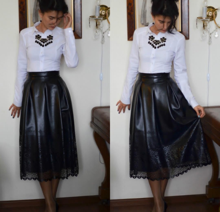 И вот с этой юбкой тоже здорово. Она под кожу, купила когда то за копейки в фамилии)