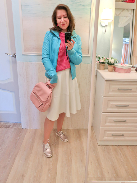 Недавно купила себе косуху, ношу со всем, очень довольна. На весну у меня ещё плащ типа дождевика, жилет. Хочу купить тренч