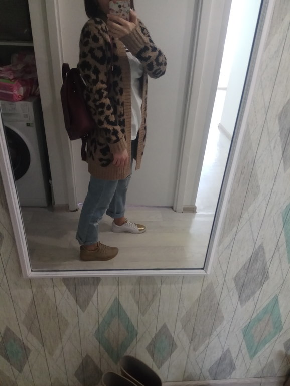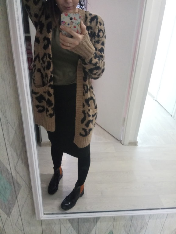 На прогулкеНе обошел меня стороной леопардовый принт. Купился такой кардиган, пытаюсь пристроить его в гардероб. С чем ещё его можно носить? Конструктивную критику приветствую)