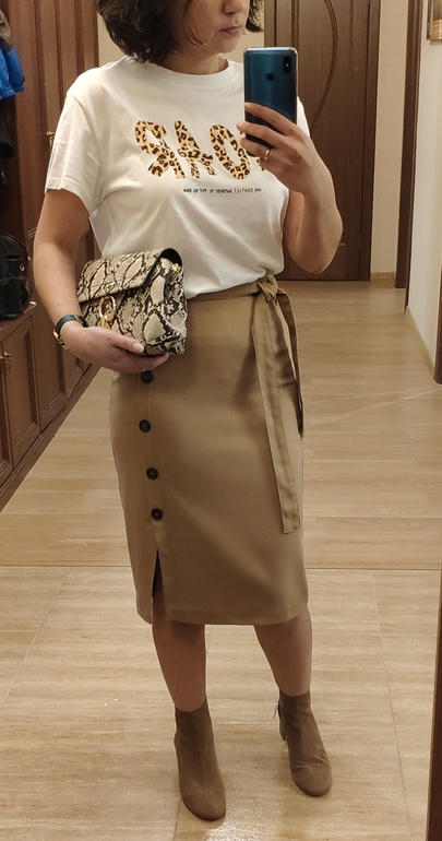А юбка да, в магазине как будто свободнее была. Но может замеряна была, а моя из упаковки? Мне кажется растянется она. Или я потолстела))