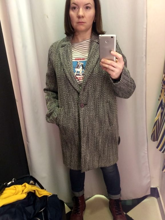 Девушки, посмотрите, пожалуйста, как мне? Пальто обычное, шерсти процентов 18% всего, но в бифри такие скидки, что грех не взять..
