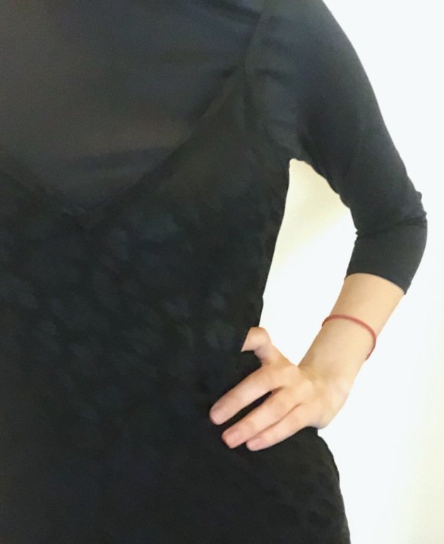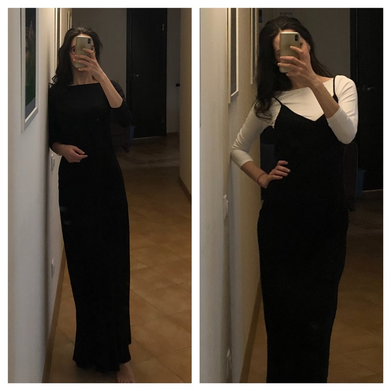 Мне нравится, когда под низ что-то поддевают. Единственное, что такая длина делает платье довольно торжественным, и прям совсем трикотажная футболка не подойдёт. А вот гладкой фактуры бадлон -отлично подойдёт