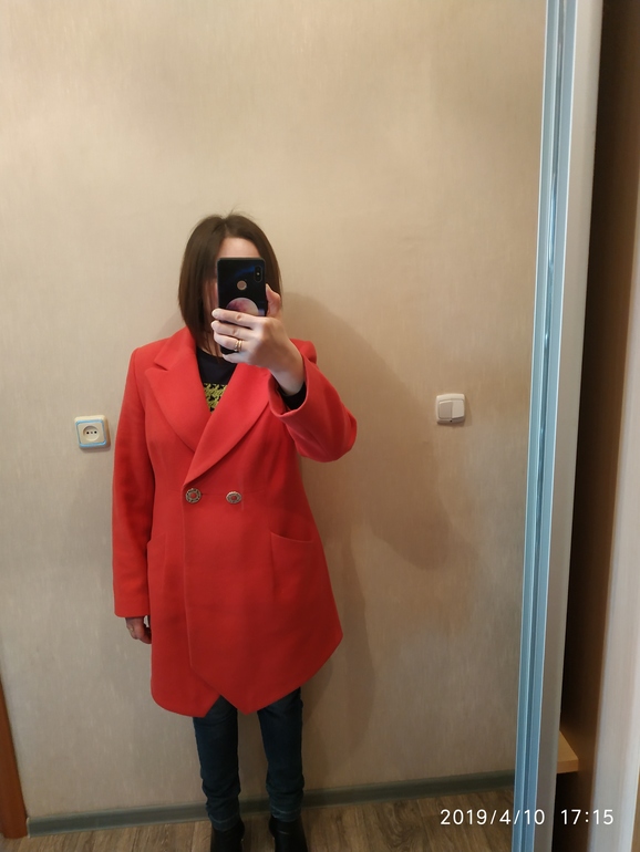 Как минимум в нём три размера лишних. Углы на полах напоминают английский военный мундир 18-19 вв. Единственный положительный момент - цвет, он красивый. Но всё равно пальто в топку - оно вас уродует.