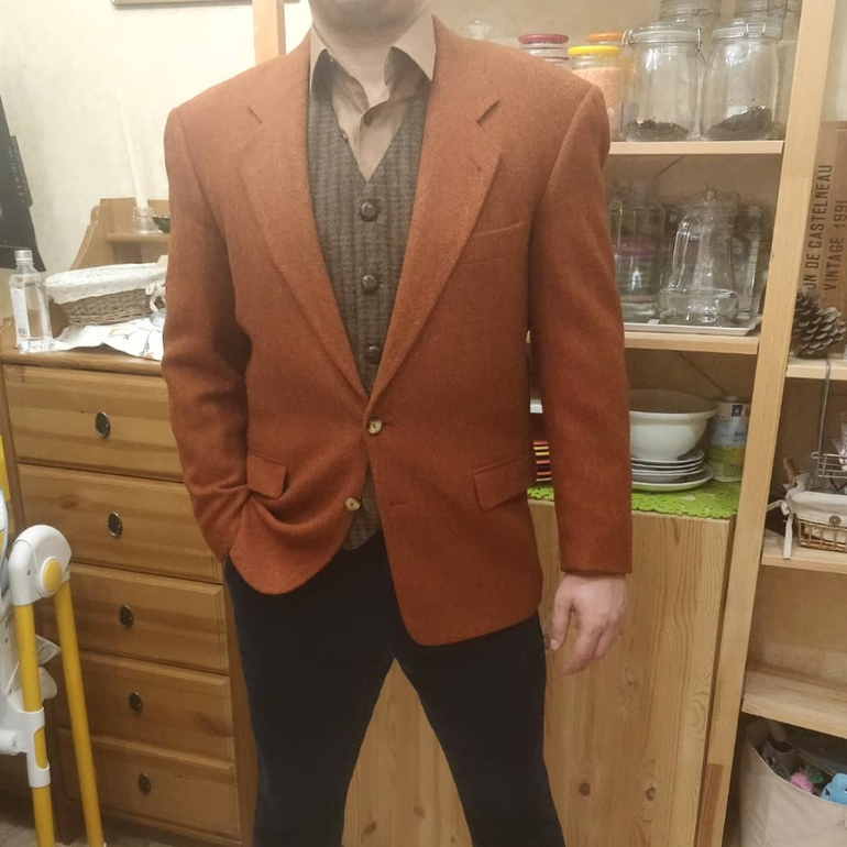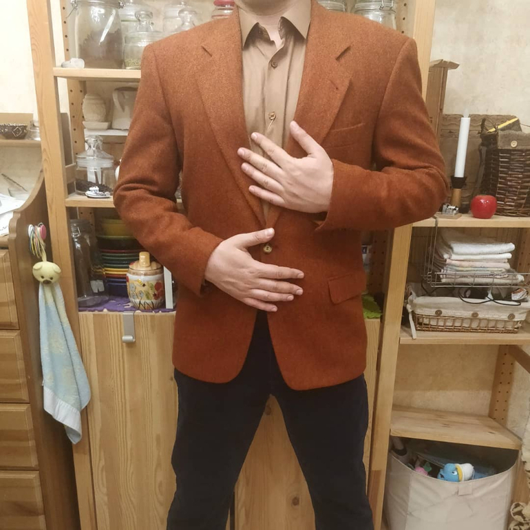 И заодно покажу мужа в том самом пиджаке) Уломала я его не красить пиджак , и подобрала ему жилетку и рубашки.