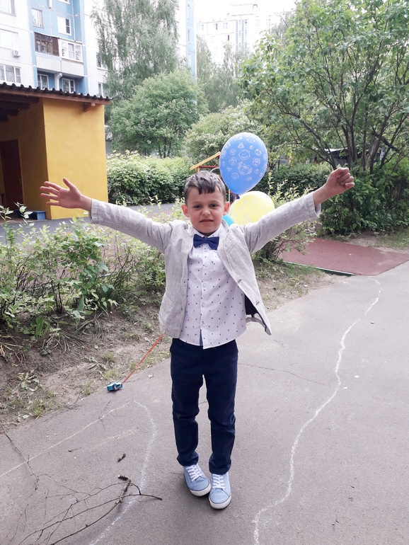 хотела одеть в кеды, джинсы и пиджак, но оказалось там строгий дресс-код. Пришлось покупать, однако к школе рубашка еще пришлась впору, а вот брюки видимо младший донашивать будет. Но тут мой промах, не угадала с длиной, а так бы и в школе доносил.