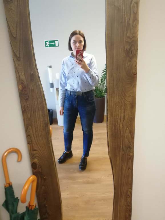 Рубашка неплохая, просится в более расслабленном варианте ее носить. С этими джинсами не стоит вместе.