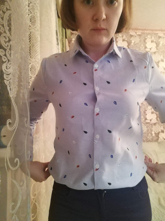 Все пишут про пуговки.. если б вы ниже не написали про офис, я б рекомендовала даже две расстегнуть и рукав закатать. У них один минус о котором я забыла в посте упомянуть, ну совсем никакой манжет. Именно у этих, у второй белой с полоской нормальный. Но так как вам надо в офис такой вариант наверно более подходящий как у вас.