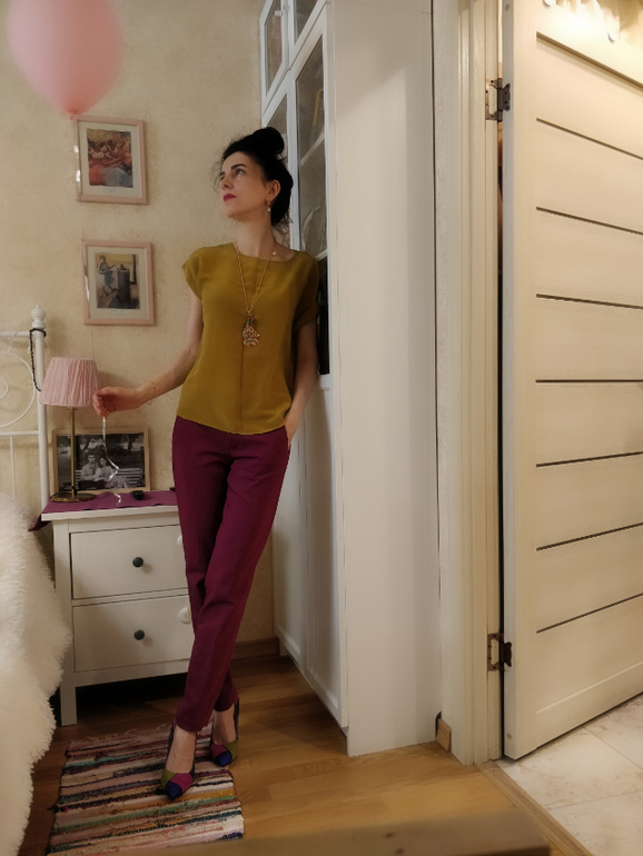 У меня много подходящих вещей под них, так как вещи в основном таких оттенков. Мне хотелось носить их именно с жилетом и шелковыми толпами с Али .