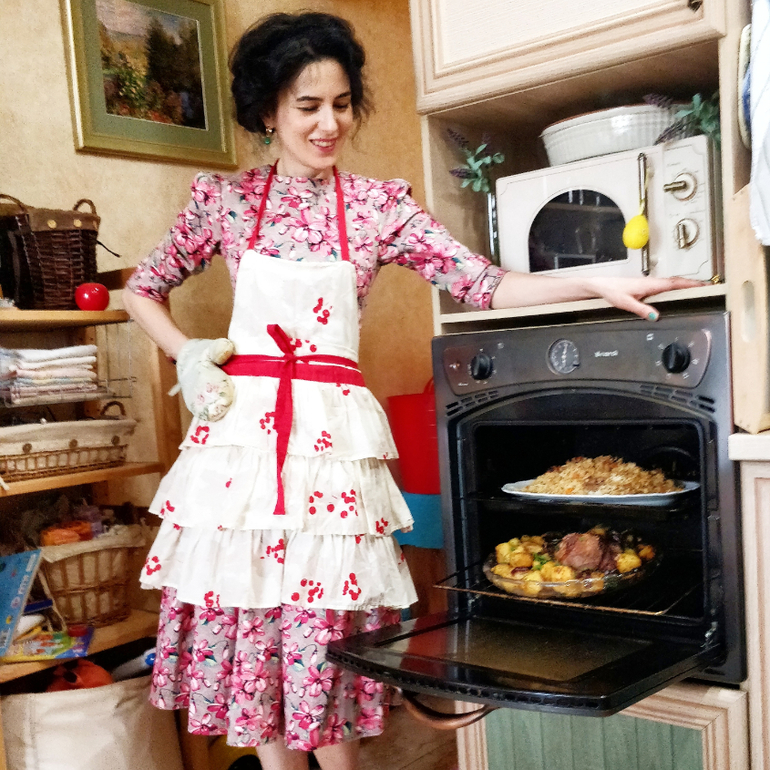 Платье достаточно простое, в нем можно и дома гостей принять, что я и сделала)