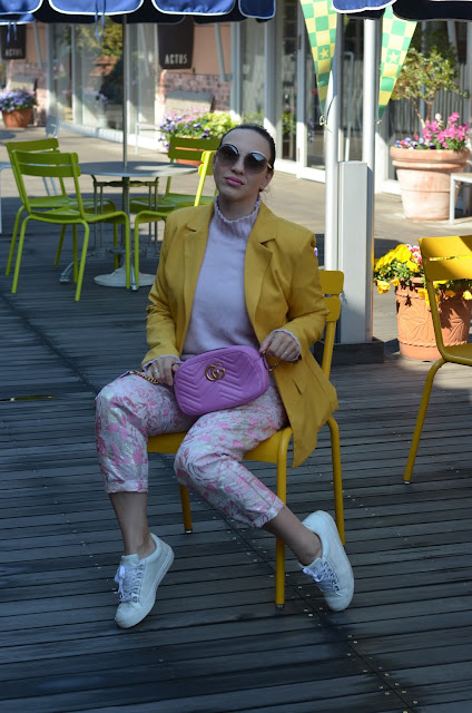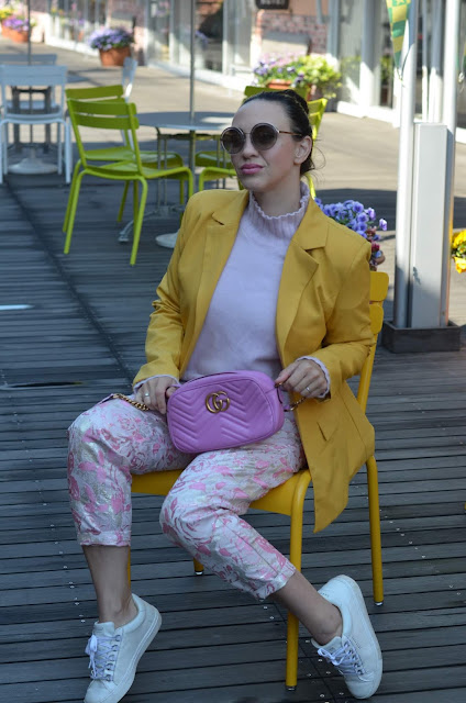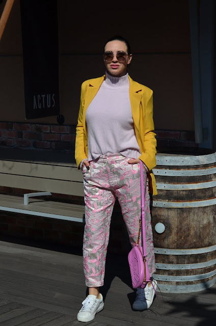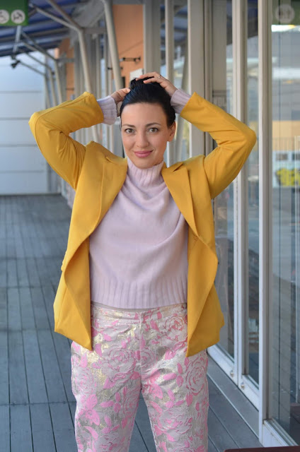Когда я писала, что горчичный цвет универсальный, я не шутила. Абсолютно случайно надела свой жакет с розовым и сама обалдела от того, насколько классное сочетание получилось.