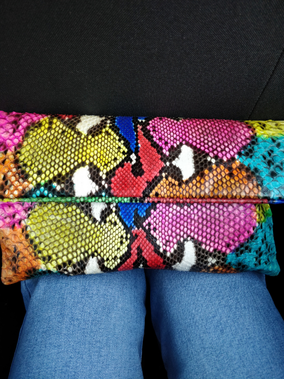 Клатч заказывала давно, на ярмарке мастеров. Взяла понятное дело из- за буйства красок)) А сейчас он ещё и в тренд попал...питон)