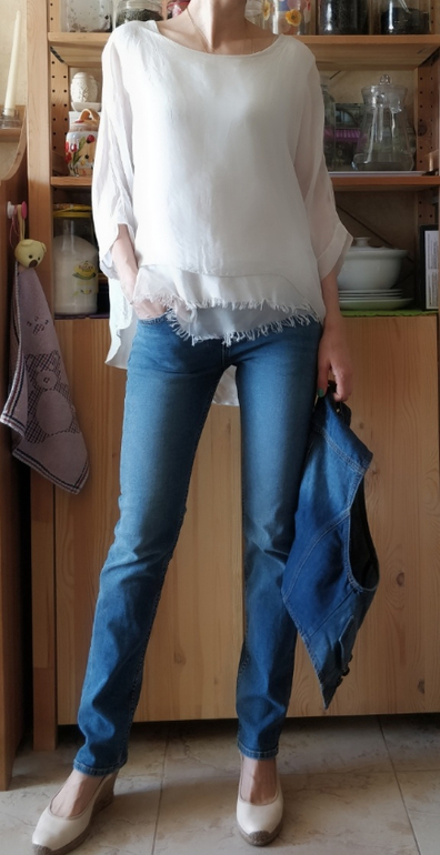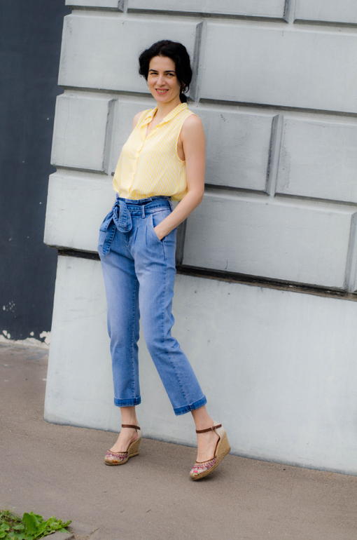 Джинсы сочетаются хорошо с разной обувью. Не люблю правда укороченные брюки, но... выбирать не приходится)