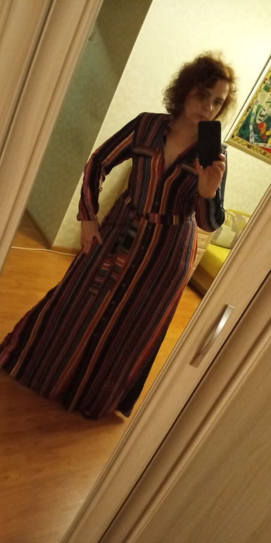 Спасибо! Длина в пол это моё. Почему-то мне идёт. И накладные карманы на груди из вискозы не придают объем.