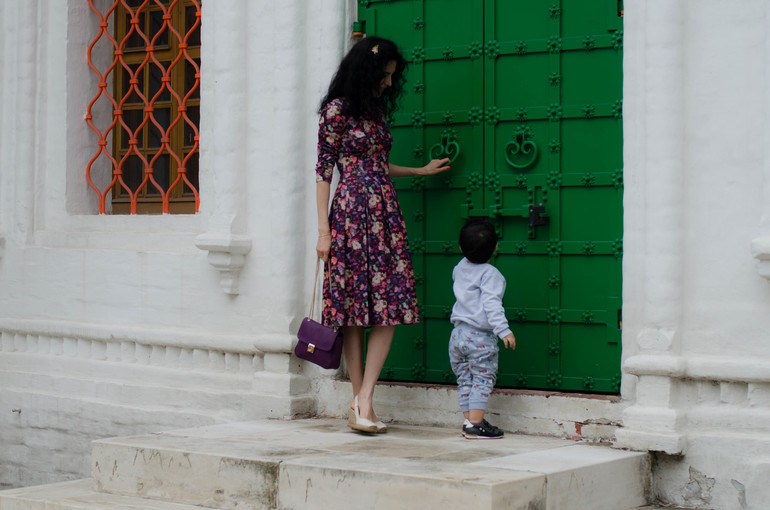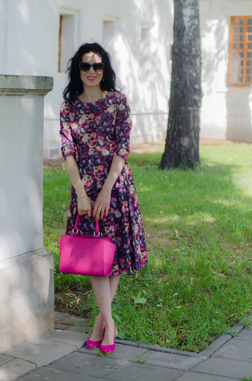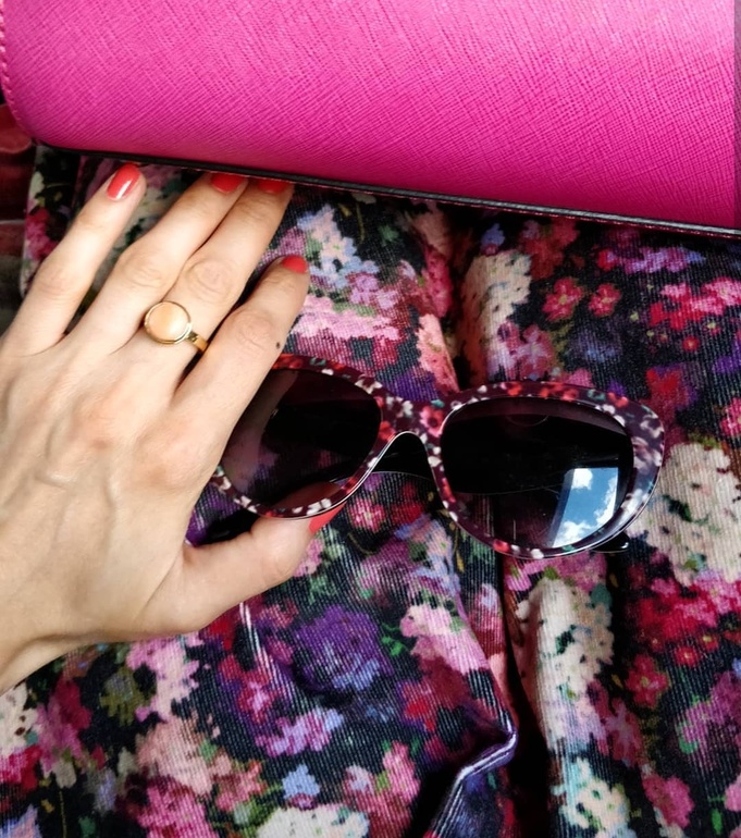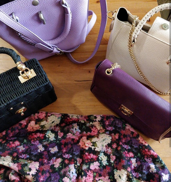 Здесь мои удобные эспадрильи, телесного цвета, и фиолетовая сумка. Удобно и не так уж ярко)