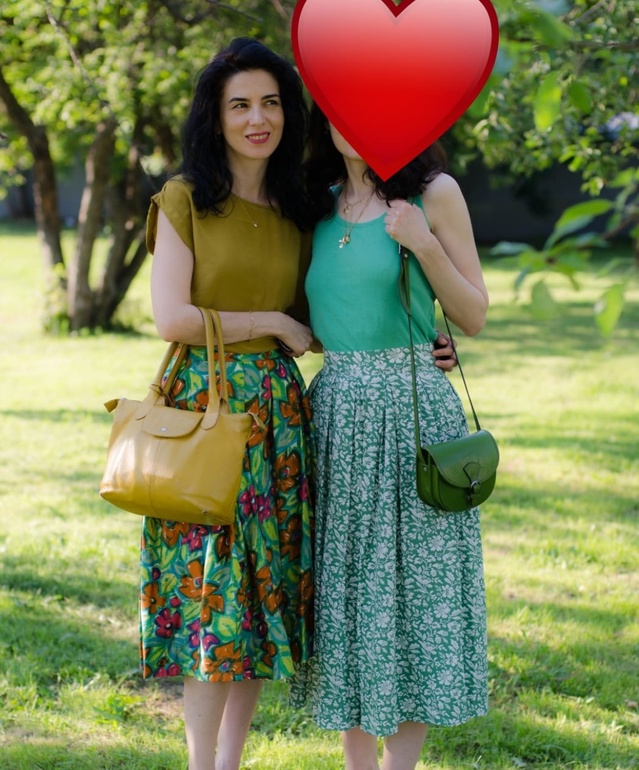 Дальше на фото, мы с сестрой обе в зелёном). Но зелёный совсем разный)