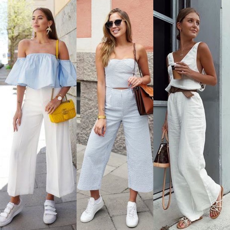 В начале лета очень кстати тренд на длину миди. Девочки, кто ещё не успел приобрести загар, длина миди отлично замаскирует бледные ноги 😀 смело берите юбку-миди или кюлоты, актуальные шлепки и будете самая модная 😀 Очень женственно, не сковывает движений и комфортно для жары.