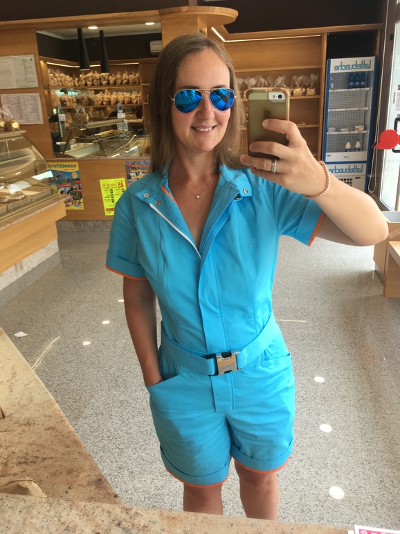 Цвет у вашего комбинезона потрясный, он очень вам идет