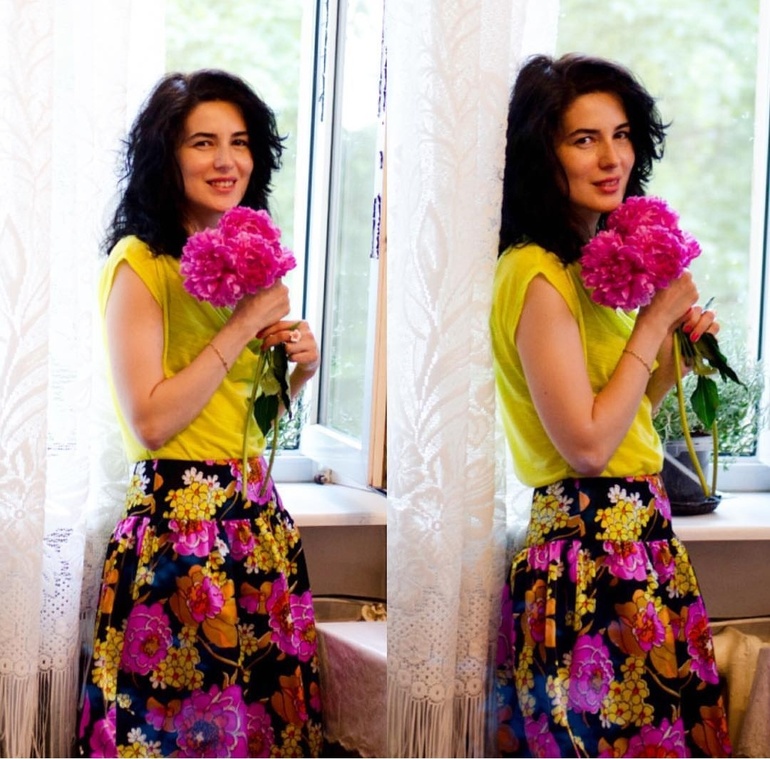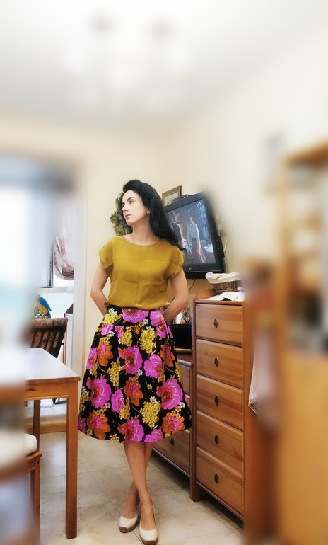 Из одной моя тетя в свои 16 сшила себе сарафан. Надела один раз на выпускной) и всё. Вторая ткань лежала новая. Я взялась за вторую. Отдала портнихе несколько разных тканей на юбки.