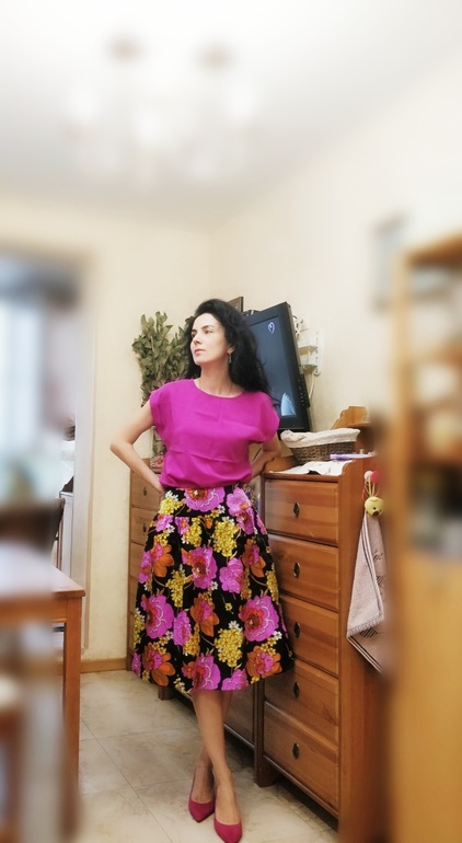 Я работала тогда, бегала туда сюда, забыла совсем. Потом пришла пора забирать юбки. Портниха сшила мне все, как я люблю, а эту сделала на свой вкус) Баллон. Не могу сказать, что я была в восторге. Но с другой стороны, одинаковые юбки, тоже неинтересно. Остался ещё кусок ткани на топ. Его не сфотографировала, так как не надевала ещё.