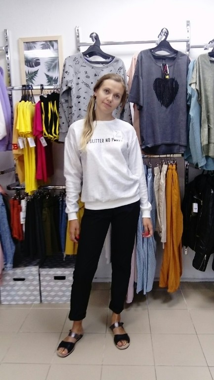 Самые обычные вещи, если честно. Не знаю, что в них интересного. Джинсы хорошо на вас сидят. А вообще Вы хорошенькая, все хорошо вам. Обувь на любителя
