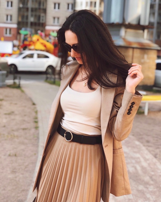Вот ты просто нереальной красоты и модельной внешности девушка. Кстати, хочу обратить внимание на одну интересную вещь. По всем занудным правилам цветотипов с твоей яркой внешностью нюд и кэмел смотреться не должны. Но ведь идет же! Замечательный образ. И точно так же я обратила внимание на то, что многим любительницам "пыльной розы, и ничего другого" очень даже неплохо было бы одеться во что-нибудь поярче и побрутальнее.