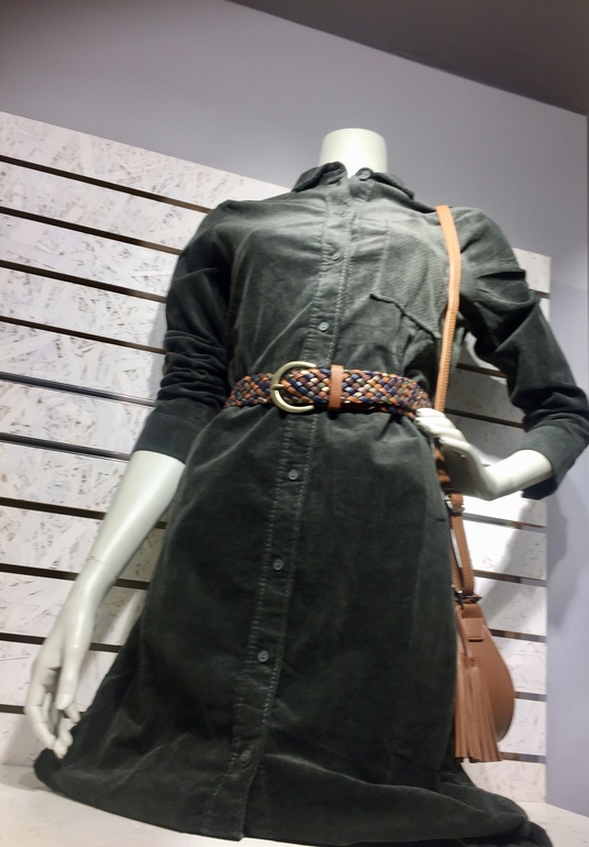 Вставлю свои пять копеек, то,что цвет не идёт не согласна,образы из примерочной не всегда гармоничны, в данном случае образ не завершен,это примерка на скорую руку,если это обыграть тупо ботфортами и макияжем вид будет другой совершенно, плюс яркий аксессуар контрастного цвета,даже тот же шейный платок к лицу пестрый с добавлением ярких цветов и содержащий немного хаки и картина изменится координально,плюс вельвет слегка отблескивает,сидит оно отлично.