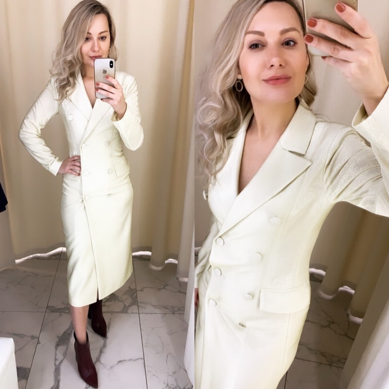 Здесь платье с очень акцентным «ренессансным» вырезом и объемными рукавами. Вообще оно заявлено как платье с открытыми плечами. Ну такое, нарядненькое :)