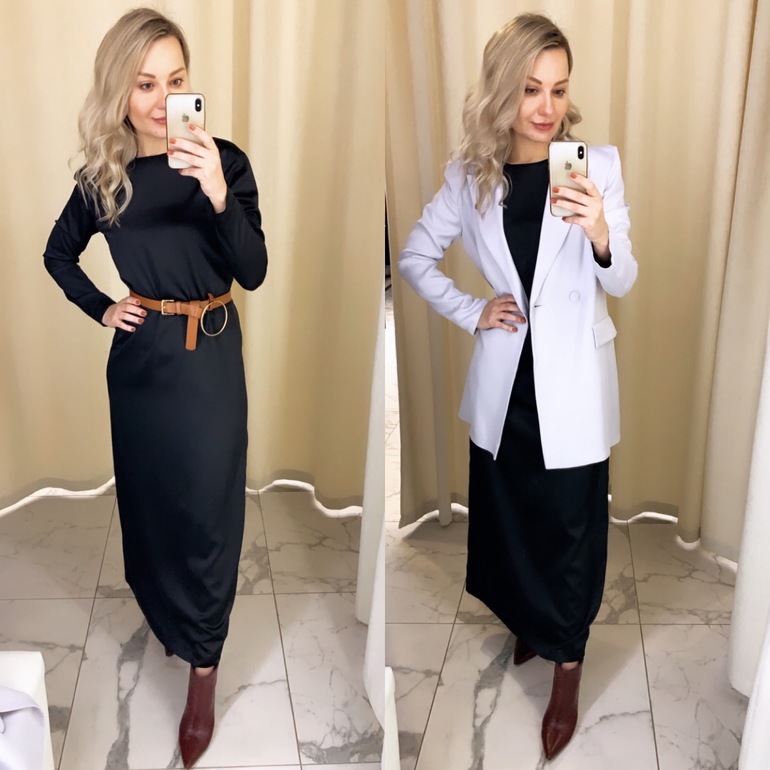 3. Лаконичное чёрное платье в длине макси, прямой крой, тяжелая ткань с подкладом. Не скатывается по колготкам, не задирается.