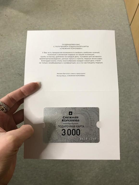 Никогда не забуду как мне подарили сертификат на 5 тыщ в Снежную..худшего подарка не придумать..ничего не купишь там нормального за эти деньги. Три магаза обошла. Никогда в жизни не дарю сертификаты.