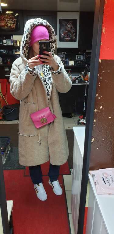 Она сделана из шерсти верблюда. Верблюд не пострадал (хотя смотрю на сайте, там подобные из овчины, может меня тоже обманули и у меня не верблюжья шерсть). А вот леопардовые вставки явно получены от какого-то козла насильственным способом.