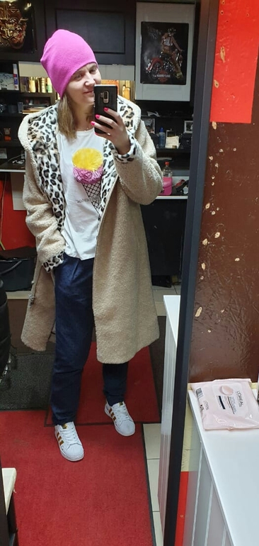 А еще вот такое пальто фирмы Веро мода. Его не очень видно, оно до середины икры и так же ношу на футболку. Хотя я зимнюю одежду в большинстве своем ношу на футболку.