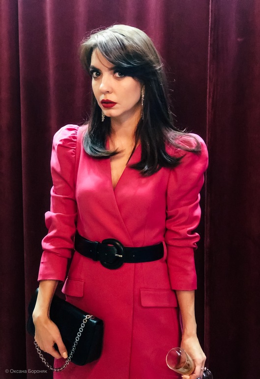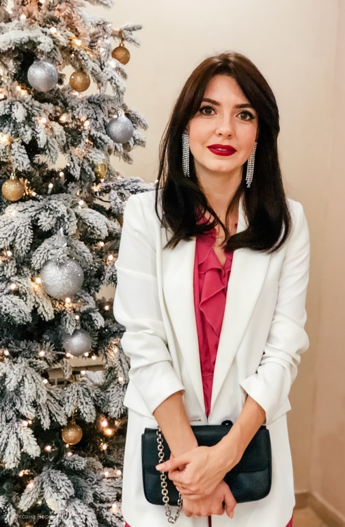 На сам Новый год мы были с семьей на банкете. Поэтому образ был более спокойный. Но с использованием этих же аксессуаров.