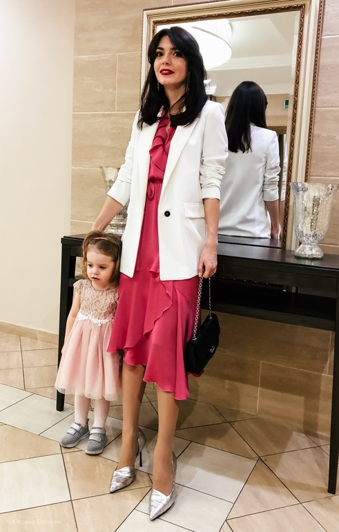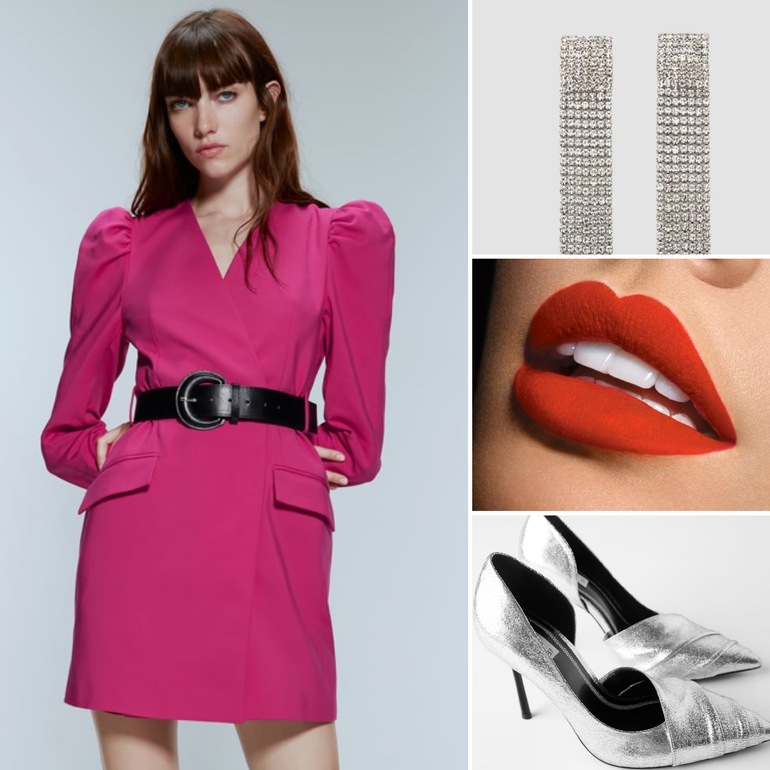 Платье это нашла в Заре онлайн, зацепило меня сразу. К нему добавила стразы, туфли серебро и красную помаду.