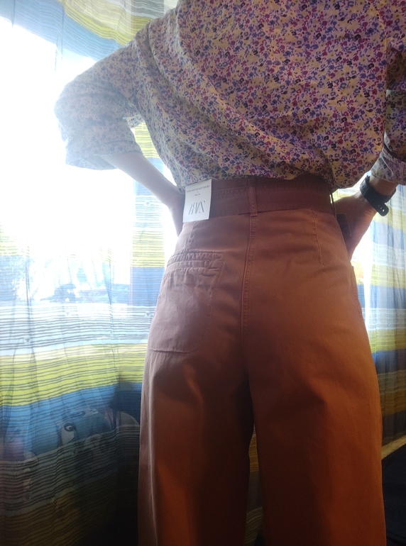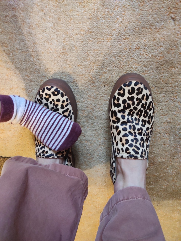 и к цветастой блузке я бы не надела леопардовые ботинки. не понимаю, как они вяжутся тут? Блузка, если судить по заднице, к брюкам подходит