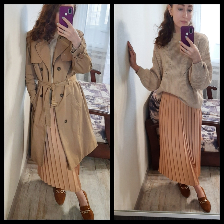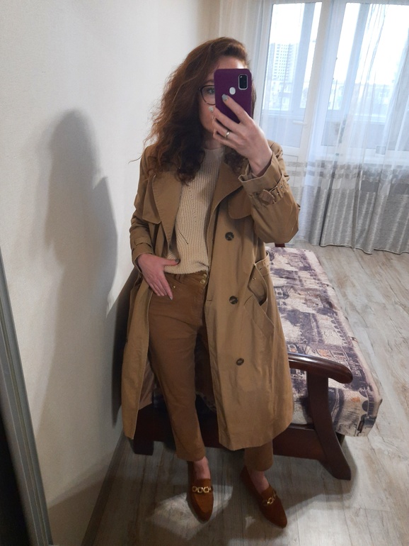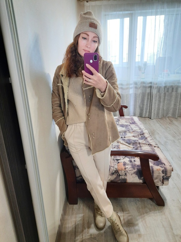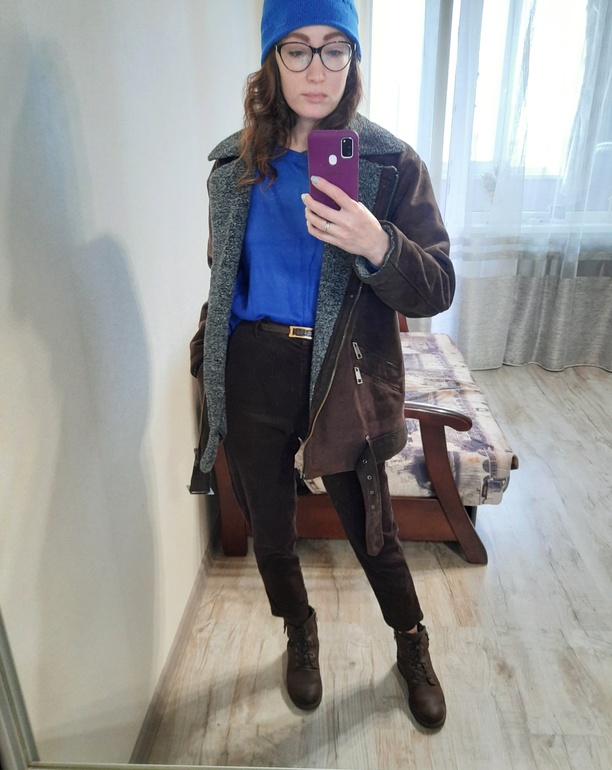 И пару образов с шоколадной деми дубленкой.