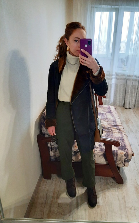 Правда сейчас похододало и я перелезла в зимнюю дубленку бутылочного цвета. Нашла к ней брюки, купила.