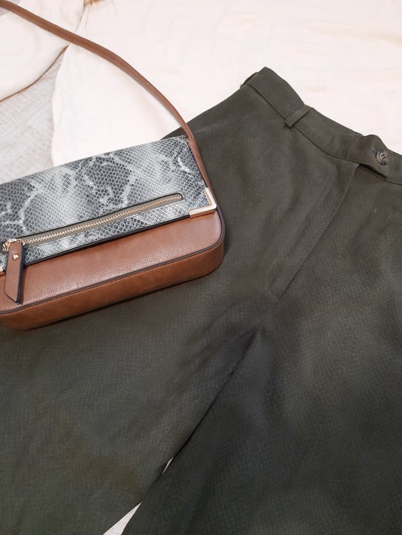 Светлые брюки, кстати с али. Это мой первый опыт покупки одежды там, и они оказались идеальные.