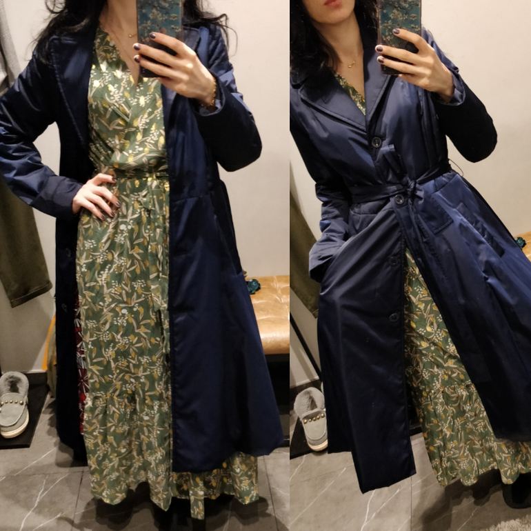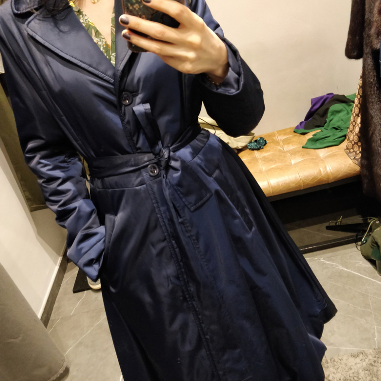 Костюмы и не моя посадка, и не мой размер, плащ мне понравился, но талия у него почему то почти на бедрах моих, хотя размер хс и сам он не длинный. Юбка большемерит, хотя тоже хс, но очень мягкая и приятная. Платье вот село хорошо, хоть и с запАхом, который мне обычно не идёт.