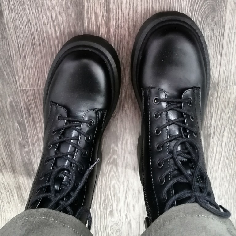 ПримерочнаяСобралась в пенсионный фонд идти, пенсионеры точно оценят🙈Не слишком "молодежно", "милитари"? Сомневаюсь уже. Купила ботинки сердцем. С дочкой один размер, если что, отдам ей.