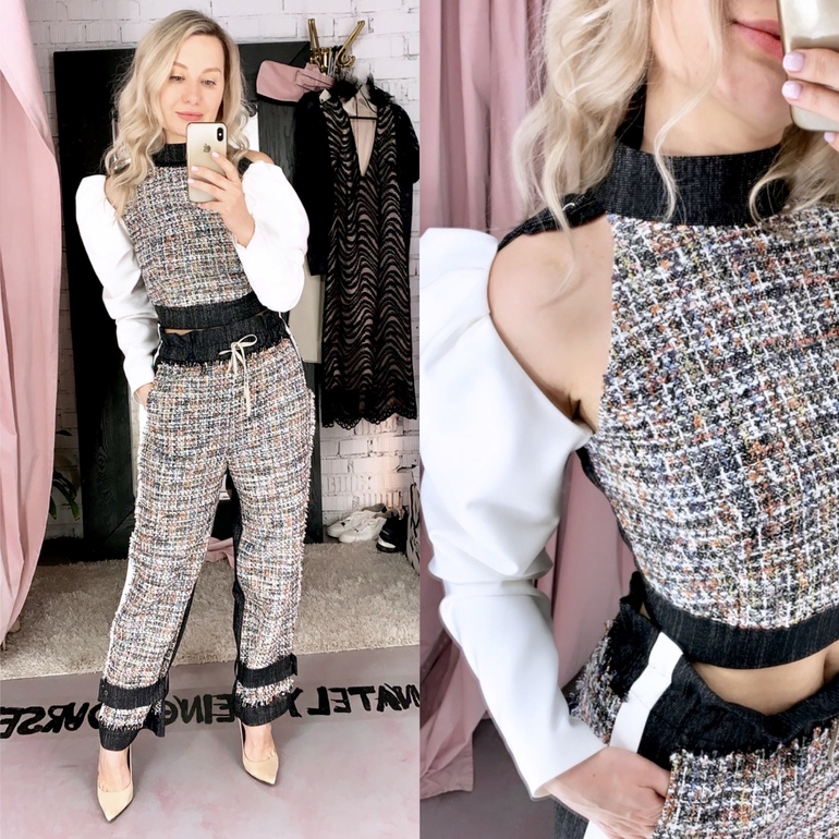 Жакеты смотрим не только «с мужского плеча», но и приталенные. По прежнему актуальна высокая посадка джинс, свободный крой и кроптопы. В этом сезоне они ещё и вязанные :) Из материала наиболее популярен твид, и разные вариации на эту тему.