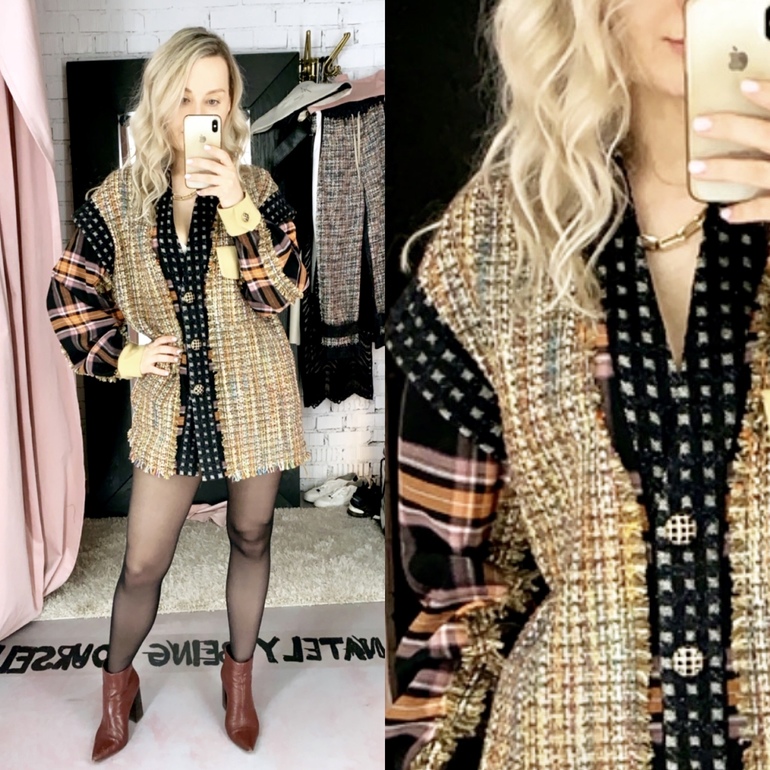Вот он меня сразил! впервые вижу, чтоб так интересно комбинировали твид! с фланелевой рубашкой и замшей на кармашках. Фурнитура шикарная!!! Это точно та вещь, которую вы не встретите на улице на ком-то другом. Единичные экземпляры и запоминающиеся. Этот кардиган точно будут разглядывать :)